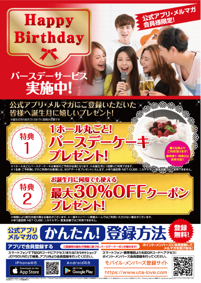 \Happy Birthday♪/カラオケショップ JOYSOUNDからバースデーサービス実施中!