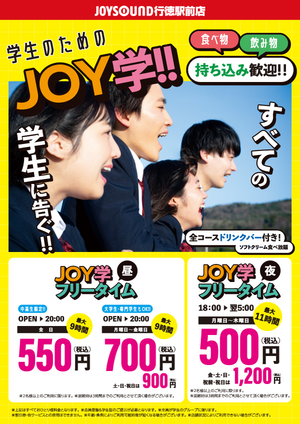 フリータイム 11:00~20:00 | 550円(中高生) 700円(専門・大学生) 土・日・祝 550円(中高生) 900円(専門・大学生) ※ドリンクバー付き ※持ち込みOK! | 700円 土・日・祝 1,050円 ※持ち込みOK! | 1,250円 土・日・祝 1,600円 ※持ち込みOK! |