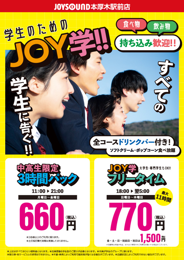 中高生限定3時間パック『JOY学』 11:00~21:00 |
