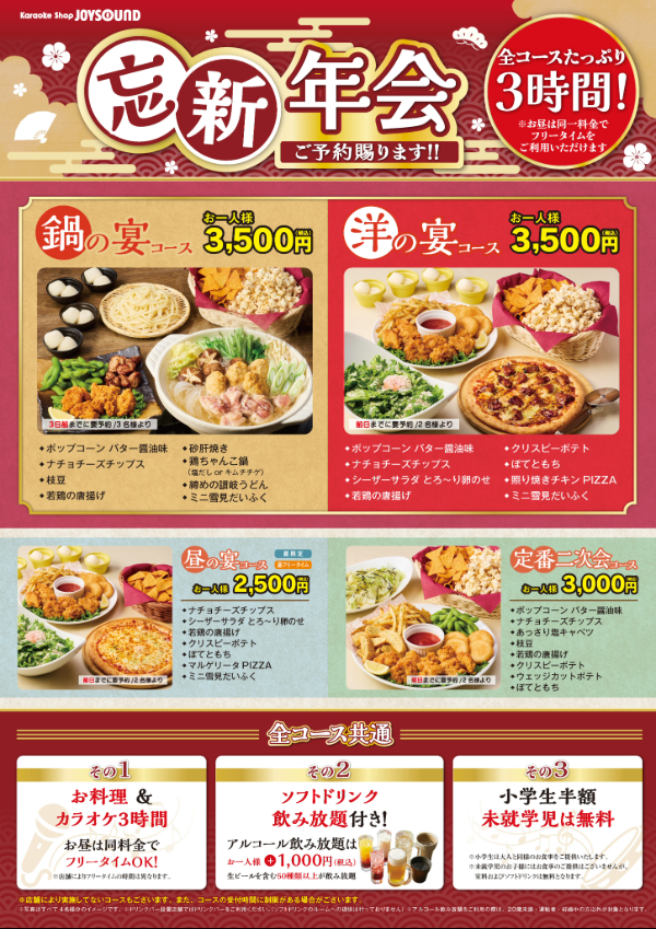 ※フリータイムはご利用時期や店内状況により制限させて頂く場合がございます。