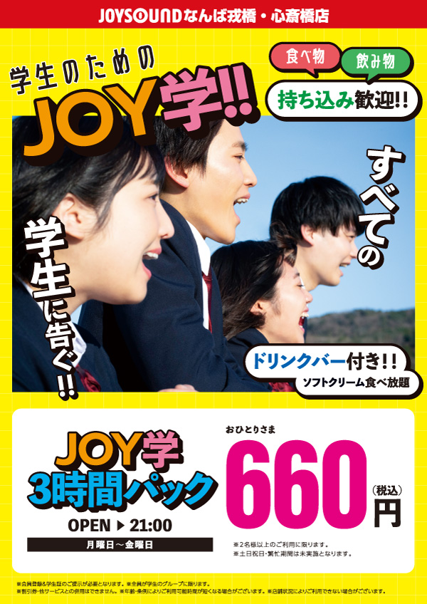 ※学生限定3時間パックは2名様~、OPEN~21:00までの間で最大3時間の利用となります。