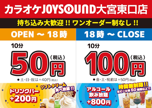 50円 土・日・祝 90円 ※ワンオーダー制なし ※持ち込みOK |