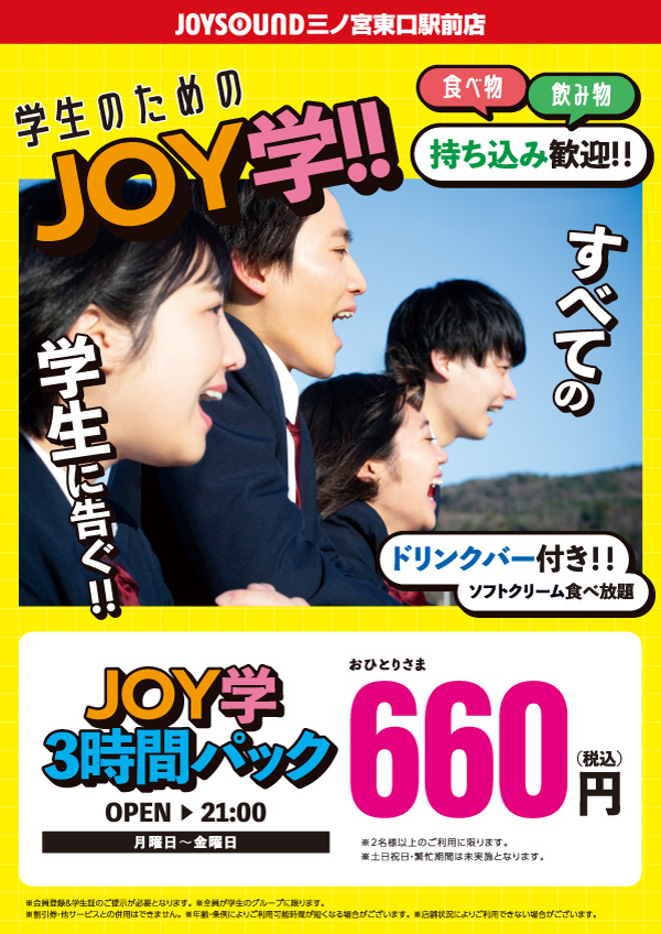 ※学生限定3時間パックは2名様~、OPEN~21:00までの間で最大3時間の利用となります。